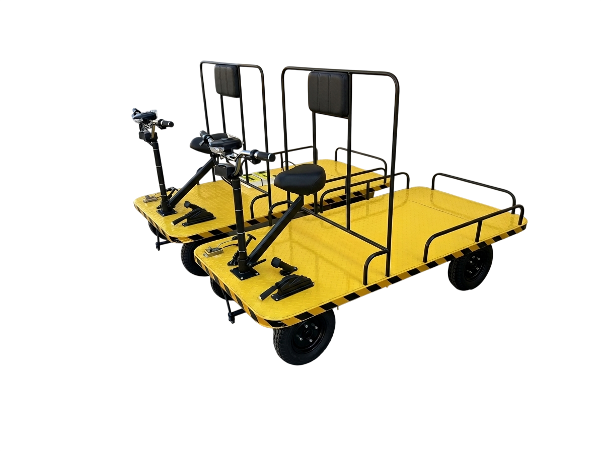 - Vehículo eléctrico con baterías recargables para transporte de carga tipo plataforma de alta capacidad de carga hasta 800 kgs.